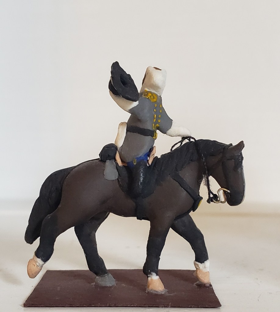 In 1995, Rebecca read biographies on Generals Ulysses S. Grant and Robert E. Lee. Then, she made our first clay Civil War cats—Grant and Lee. People sometimes ask why we didn’t do one army as cats and the other as dogs. It’s a logical question, and even when we would play Robin Hood as kids, we would be cats which meant the imaginary Sheriff of Nottingham and other “bad guys” would be dogs. So, why didn’t one general come out as a dog?