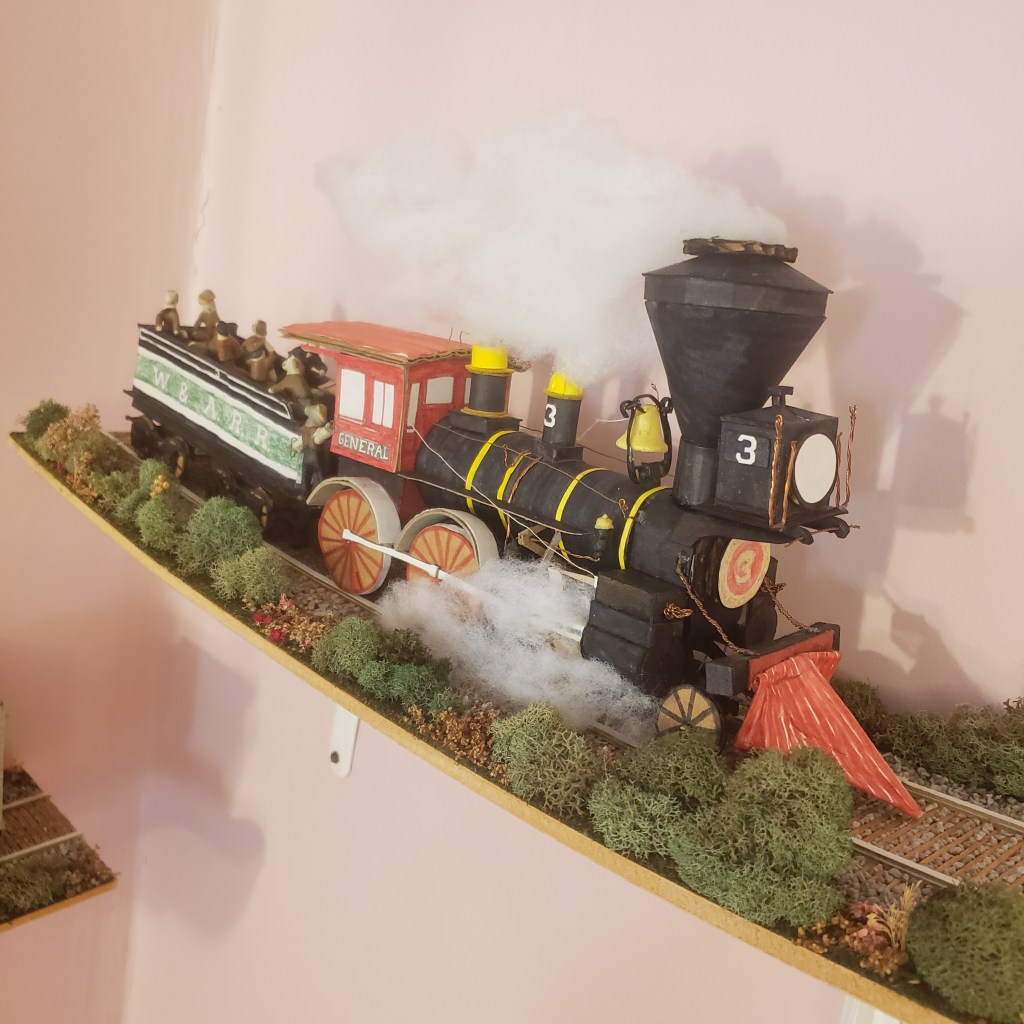 If you have been to Civil War Tails since 2018 or purchased that year’s calendar, you might know this photo, showing the locomotive General on a railroad track. But where was the General in the museum? The answer was “Nowhere”; it was in storage, along with the Texas and the rest of their diorama. Ever since opening in 2015, we have wanted to bring out “The Great Locomotive Chase,” but we could not settle on a good plan of how to display them.
