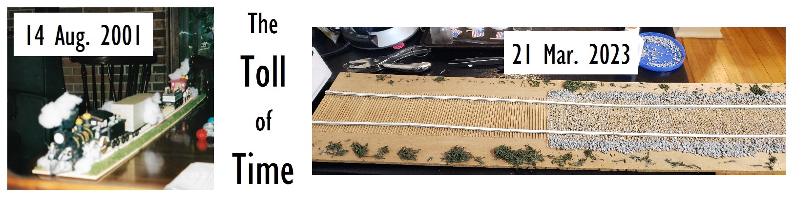Time can be rough on dioramas, and over the years, the reindeer moss “bushes” along the tracks were banged and bumped so much that by 2015, few remained, giving the track a plain, uninspiring appearance. The General lost a wheel, and we were always a little afraid to ask how much more damage might exist. Add to that the dilemma of how to display the fragile locomotives in reach of sight but not touch, and for the last eight years, we have been at an impasse.