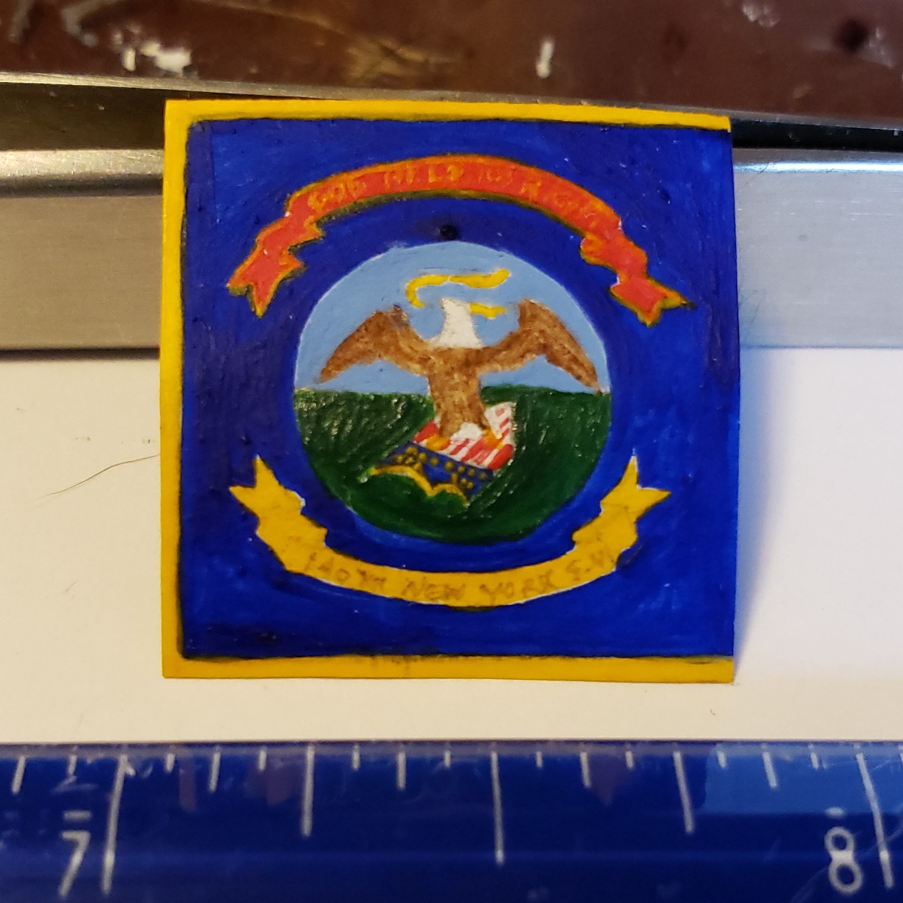 Each flag is hand-painted, following pictures of the actual flags, if we can find them. This one belongs to the 140th New York.