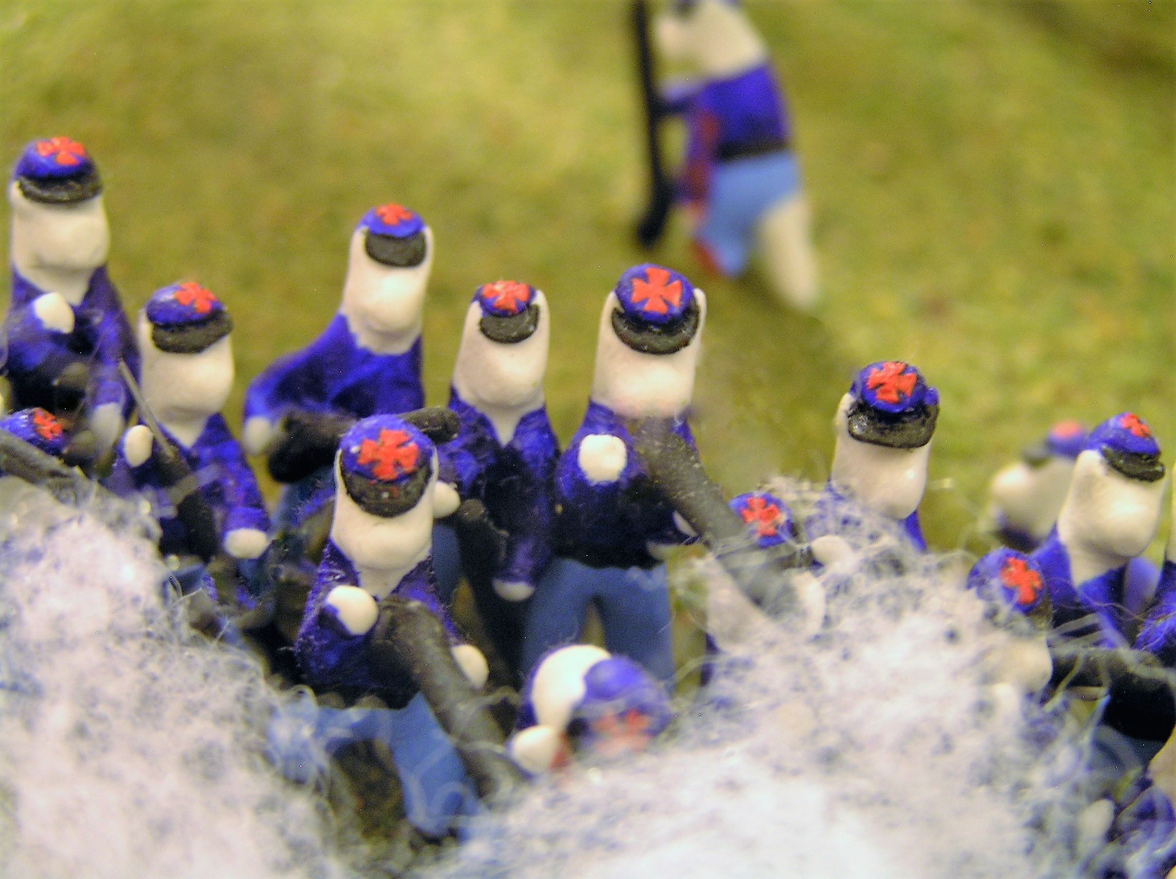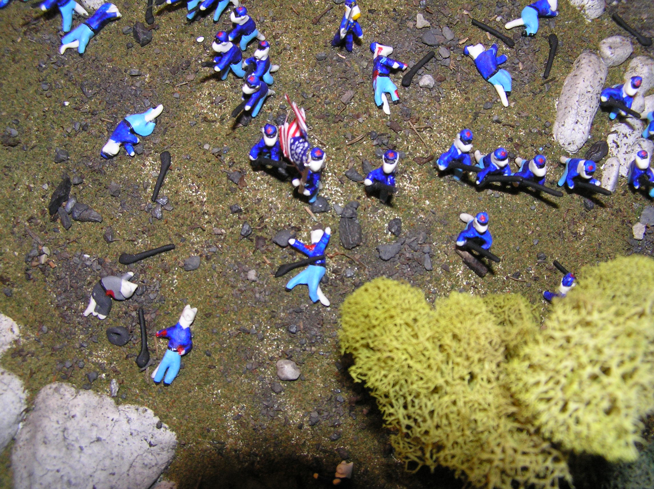 We kept reading Civil War books and kept making clay cats of people who caught our interest. After a couple of years, we began to set them up in small scenes of the events we were reading about. Over time, the dioramas became larger and more detailed and accurate.