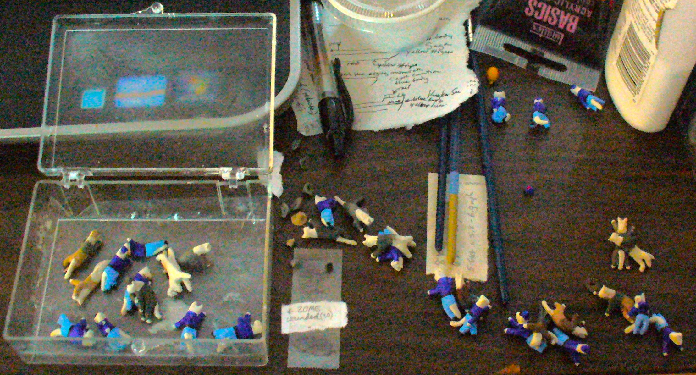 Some other photos showing the status of the diorama around that time. We were busy painting cats and in the early stages of installing ground cover: