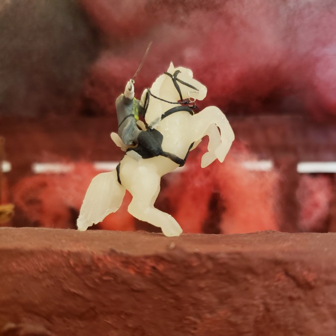 However, it seems that the little snafu got his fighting blood up, because when he reached the Angle, he joined in Pickett’s Charge and galloped past Cat 4000 to the stone wall.