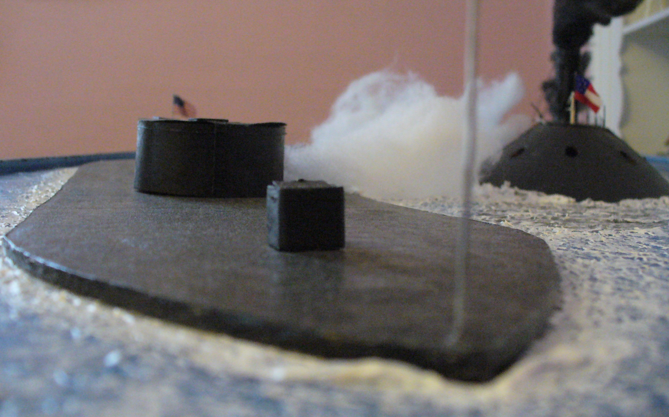 When USS Monitor appeared that night, no one put much faith in the tiny, odd little thing. She looked like nothing more than a snack for the great iron monster of the day before. It seems only her commander, Lt. John Worden, believed she could withstand Virginia. In the morning, when the Confederate ironclad appeared, Lt. Worden immediately put his little ship in between her and the grounded USS Minnesota. For hours, the two ironclads pounded away at each other, with no apparent effect. At the end of the battle, all the ironclads had to show for it were some dents and a few wounded on each side (including Lt. Worden). The contrast to the carnage of the day before must have been shocking, and led both the Union and the Confederacy to build more ironclads.