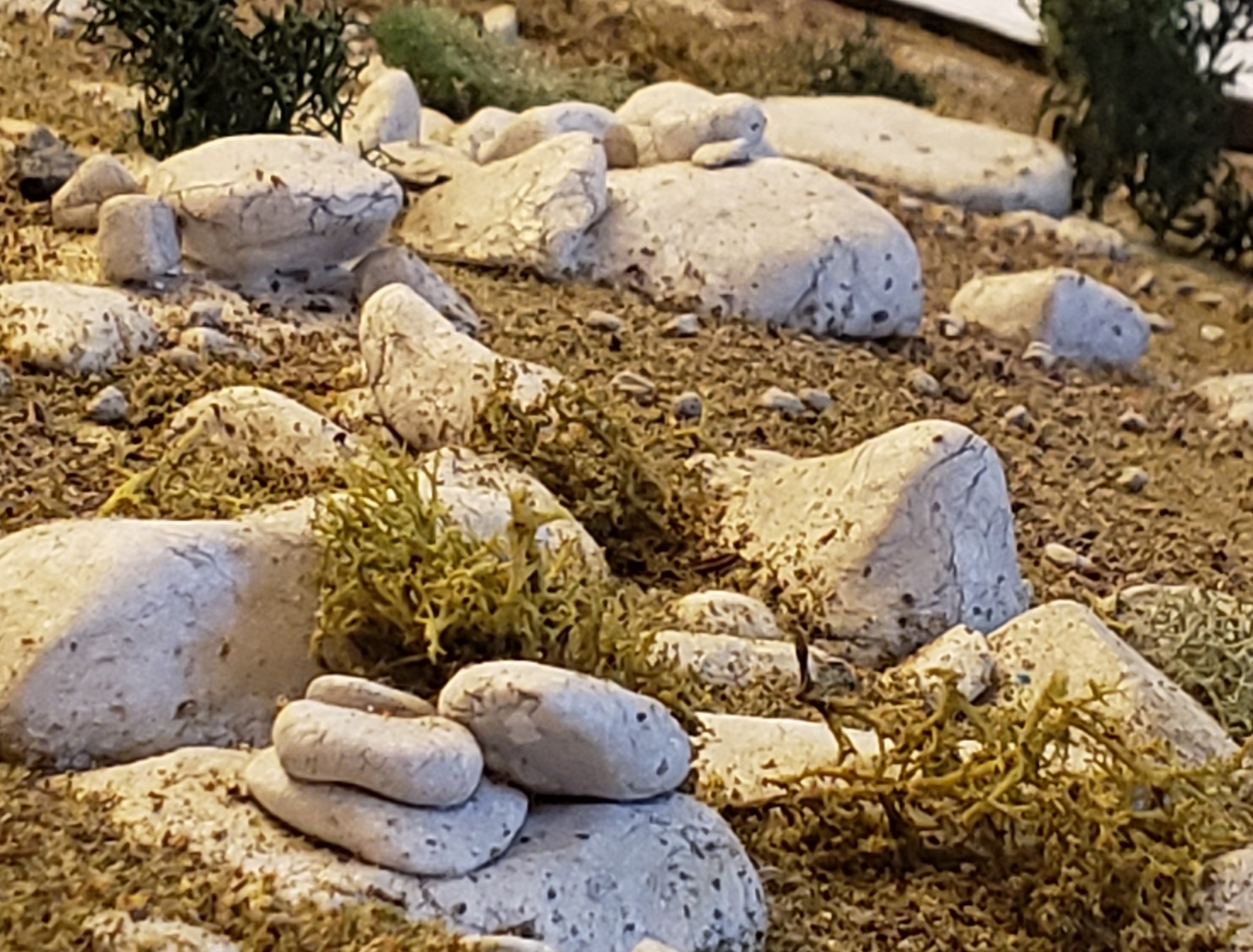 There are 2,600 hand-sculpted clay boulders on the diorama based off of photos from the battlefield (period, early 20th Century, and current). Our dad still remembers how cold it was when the three of us tromped over the hill in the dead of winter, taking hundreds of photos of thousands of rocks. (Hey, winter is a good time for rock photography—there are no leaves on the trees!) And yes, Rebecca counted all 2,600. Apparently, counting the cats wasn’t nerdy enough for her! Now, this trivia probably has you wondering, do rocks outnumber cats? Or do cats outnumber rocks?