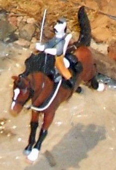Having finished Little Round Top, we both started new dioramas. Ruth began working on a cavalry fight in Rockville, Md. We considered making Cat 10K to represent Col. Charles Russell Lowell, commanding the Union cavalry. Rebecca began working on CSS Virginia ramming USS Cumberland. Who on the ships could be a K-Cat candidate? While there were several options, Lt. George Morris stood out to both of us.